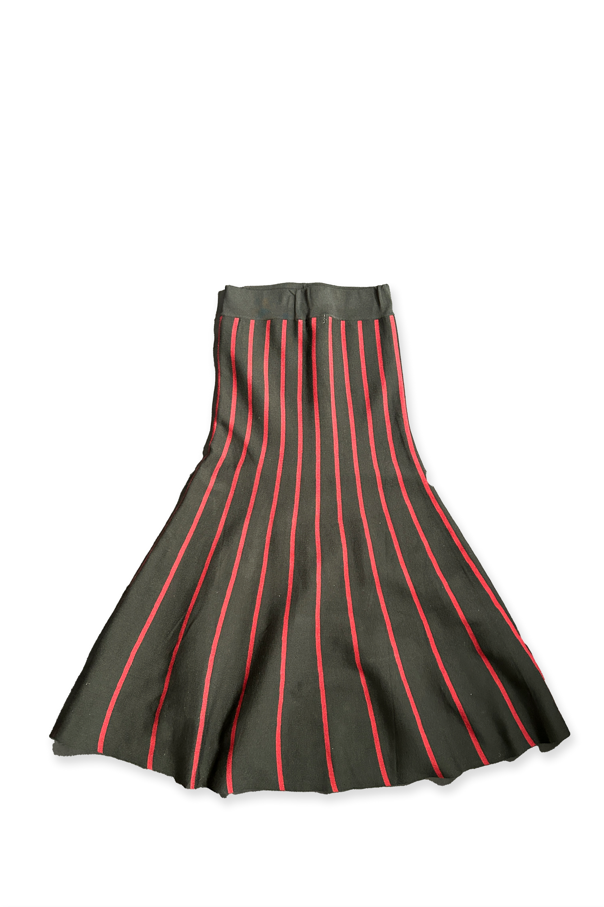 ELASTIC COTTON BELL LONG SKIRT BLACK WITH YELLOW OR RED STRIPES